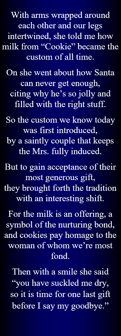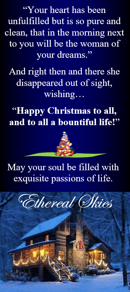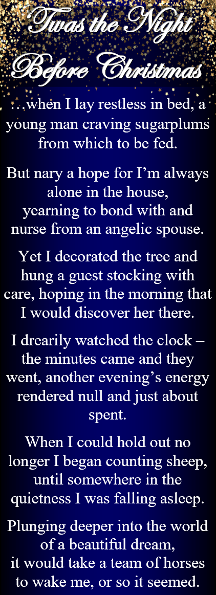 And may Mr. Claus bring you the gent of your dreams delivering a Yuletide passion that joins you in everlasting amore.
